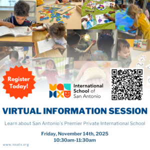 The International School of San Antonio (ISSA) is a private language immersion school serving grades Pre-K3 through 5th grade. Beginning with three-year-olds, our comprehensive program offers well-rounded rigorous education that meets and exceeds Texas state education standards and is delivered in either Mandarin Chinese, French, or Spanish. Instruction in English is added in Pre-K4 and is increased in elementary school to enable full bi-literacy. A third language of choice, music, arts, science, and physical education are also included in the curriculum. Small class sizes allow for more interaction with and attention from the teacher. Children will graduate ISSA as biliterate global citizens and will be ready for middle school in any of the two acquired languages.